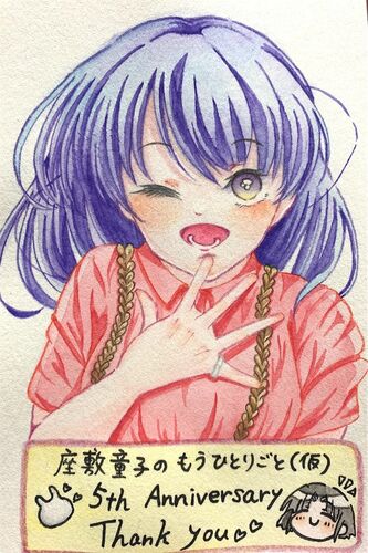 2022年4月13日をもちまして!【座敷童子のもうひとりごと(仮)】は5周年となりました!!! …いや何ヶ月前の話??? でもイラストが今月できたんだから仕方ないよね。遅くなったのは普通にすまねえ。 差分も載せておく。「5」以外にも違うところがあるわよ…